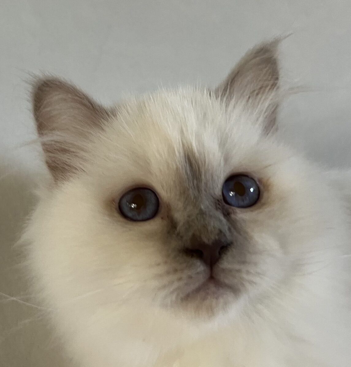Saba Onyx is a beautiful, elegant Purple Point Birman tom with deep bright blue eyes and perfect contrasting points. His calm, peaceful presence is instantly appealing – he’s the kind of cat that quietly snuggles in and creates harmony around you.