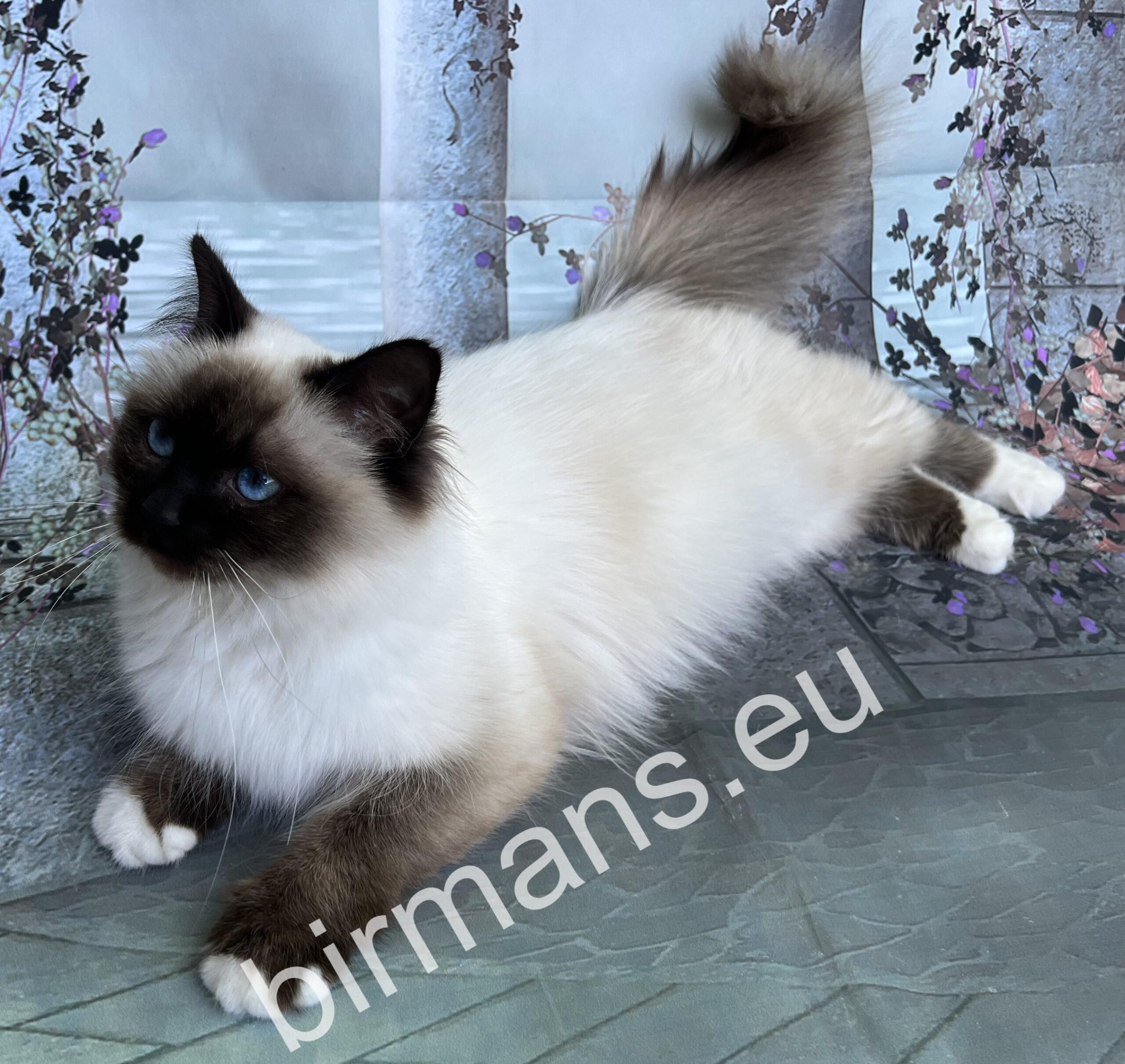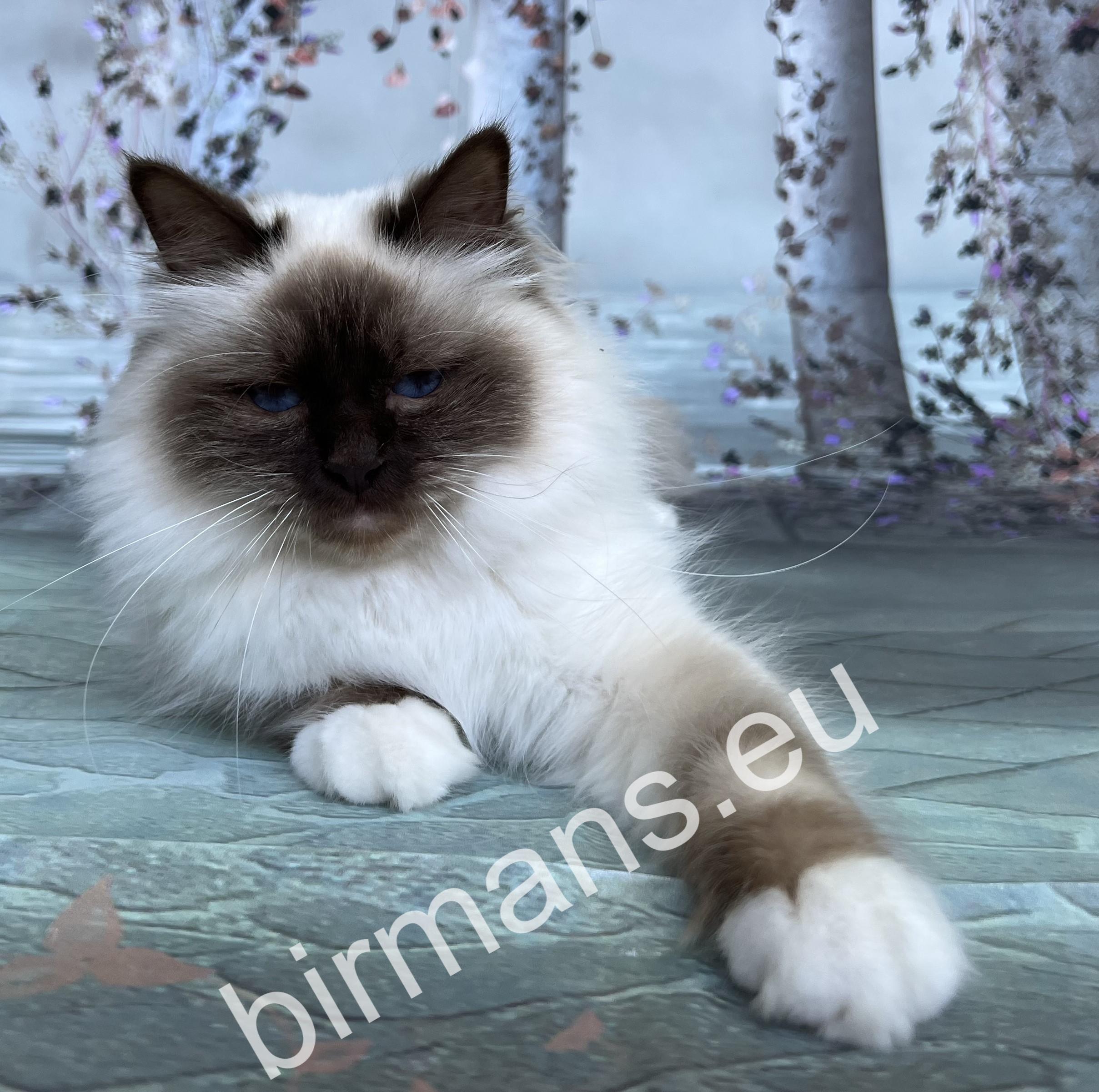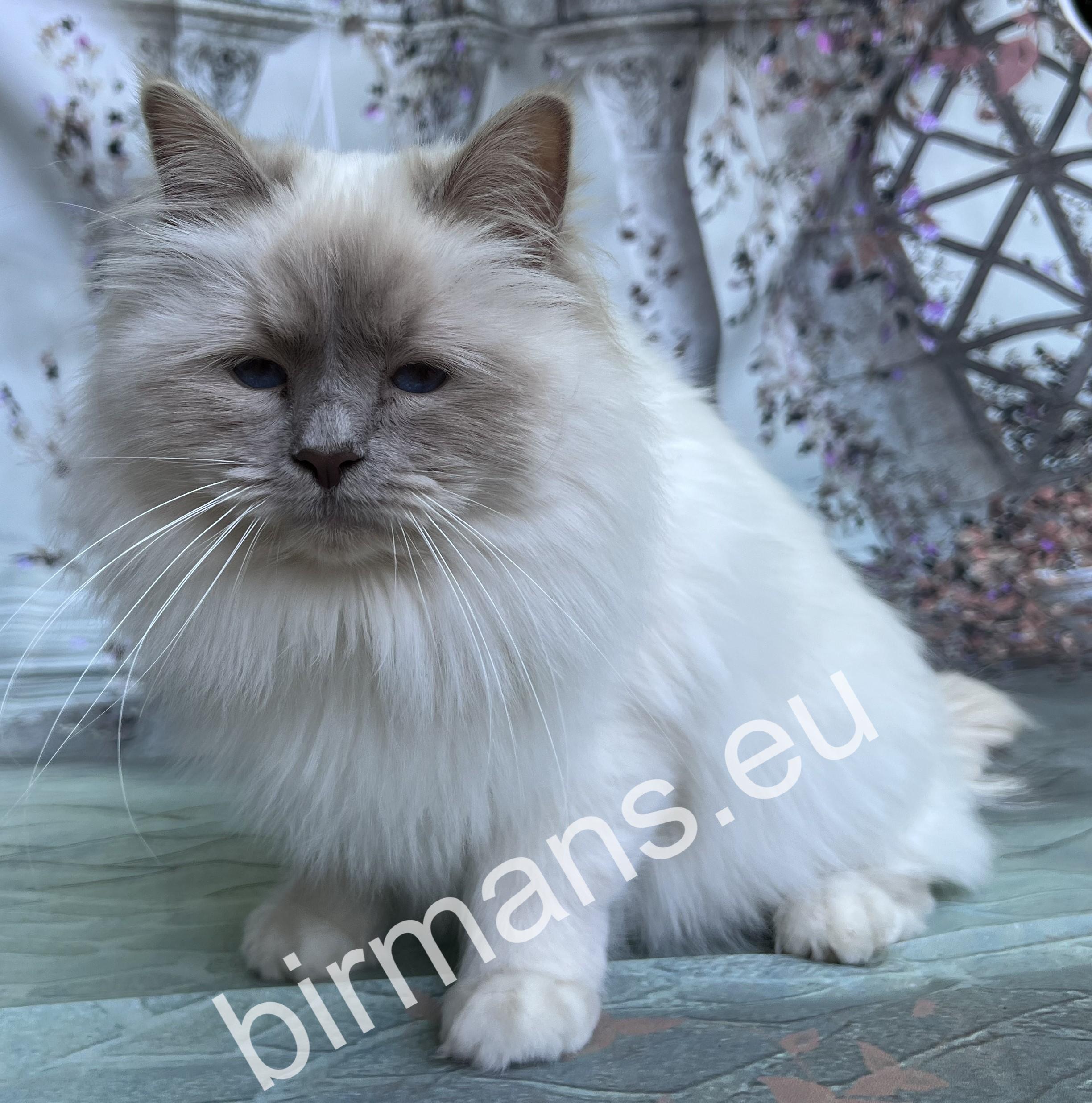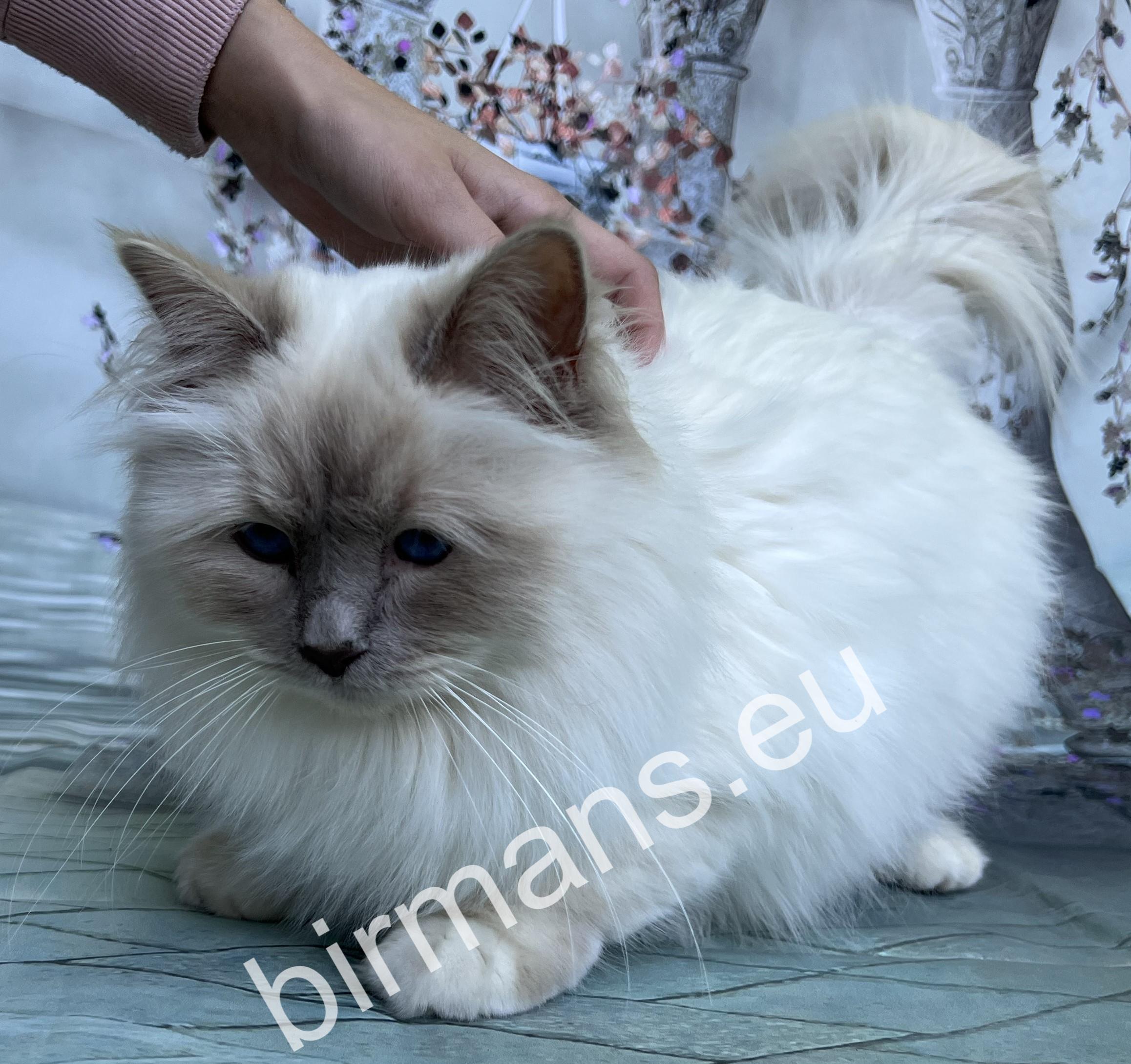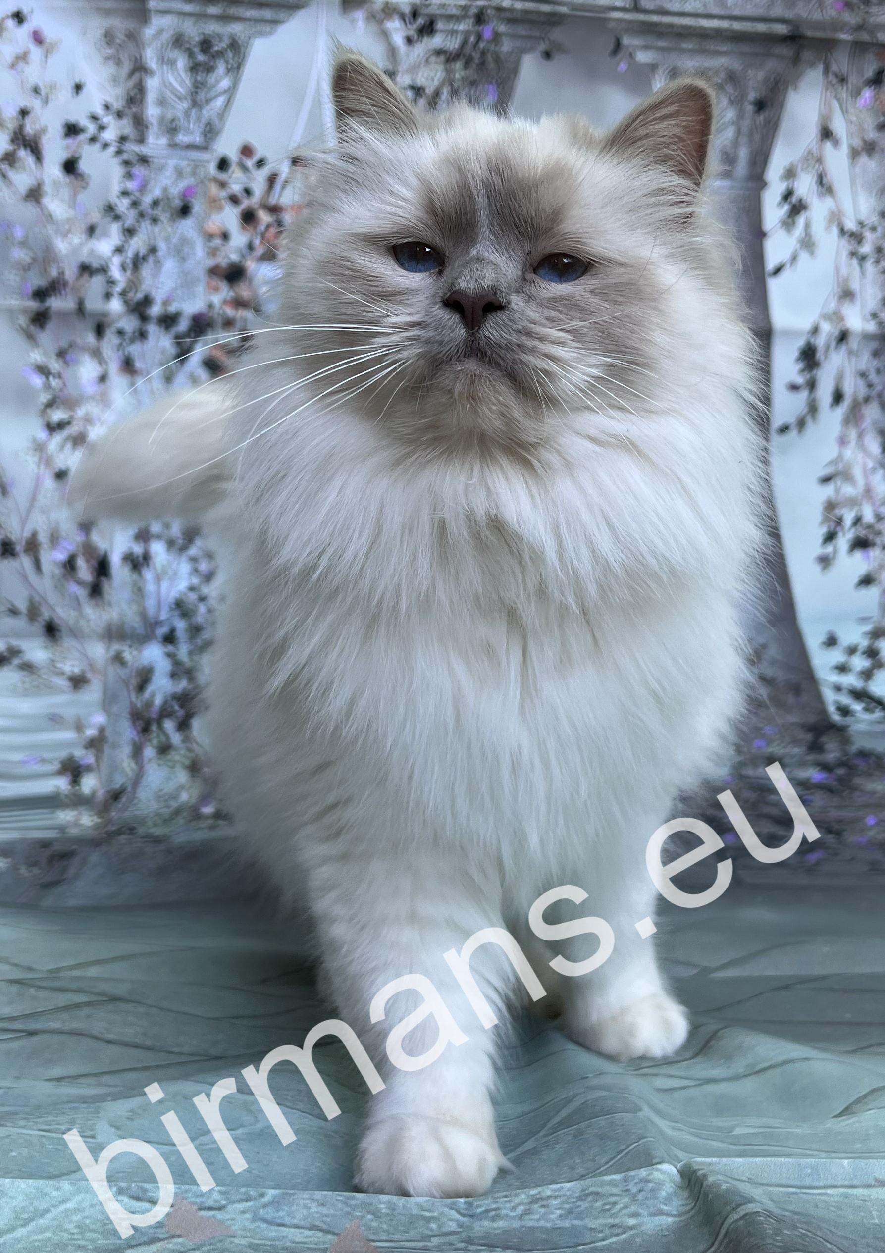 Una is a special member of our family, as she carries a dilution gene and is the only bloodline of our Naomi and Yoda kittens. Una is always able to bring a smile to your face with her kindness, care and curiosity. She watches your every move, is a little protector, and is also very easy to learn and extremely smart. With her cheerful personality, she is an instant hit with us and is always available for hide-and-seek and playing fetch as a great playmate. Una always tries to please her owner and bring as many happy, heart-warming moments as possible into everyday life. He is a very balanced, determined, calm Birman cat. In appearance, his incredibly good profile, deep blue eyes and bloodlines are unique in the Birman breed.